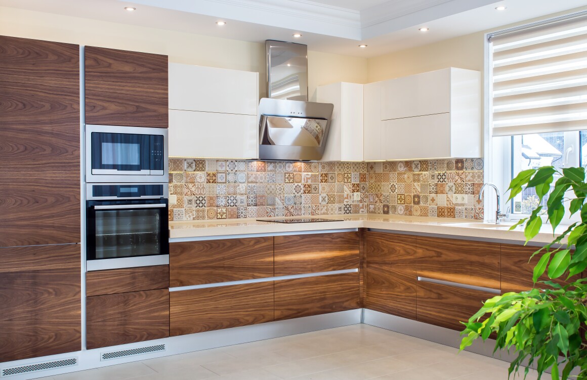 Угловая кухня в современном стиле из шпона